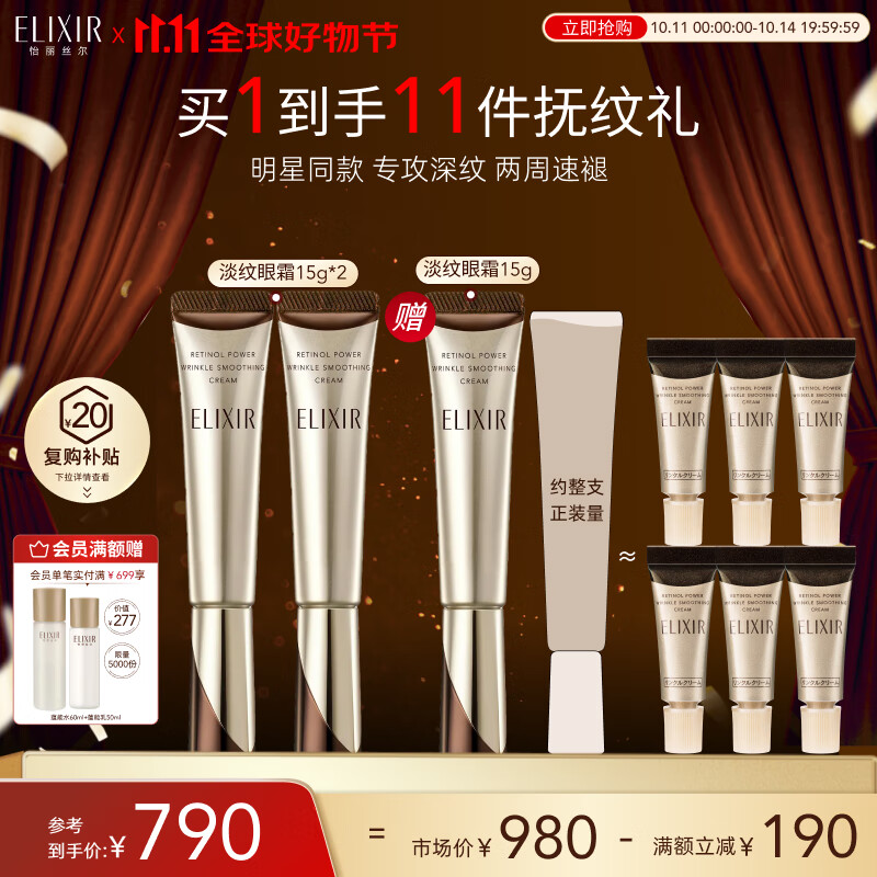 怡丽丝尔(ELIXIR)【双11抢跑】眼霜眼部精华护肤品2周淡细纹提拉紧致金管15g*2