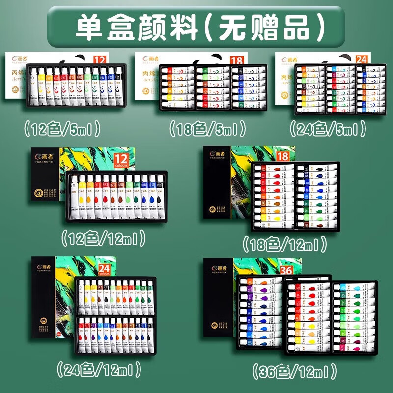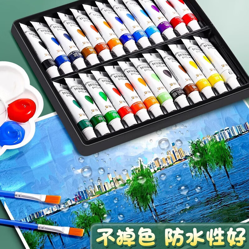 丙烯颜料套装儿童涂鸦无毒防水防晒不掉色美术生专用12色24色画画绘画彩绘diy手绘石膏娃娃涂色 单盒颜料 【丙烯颜料】24色12ml