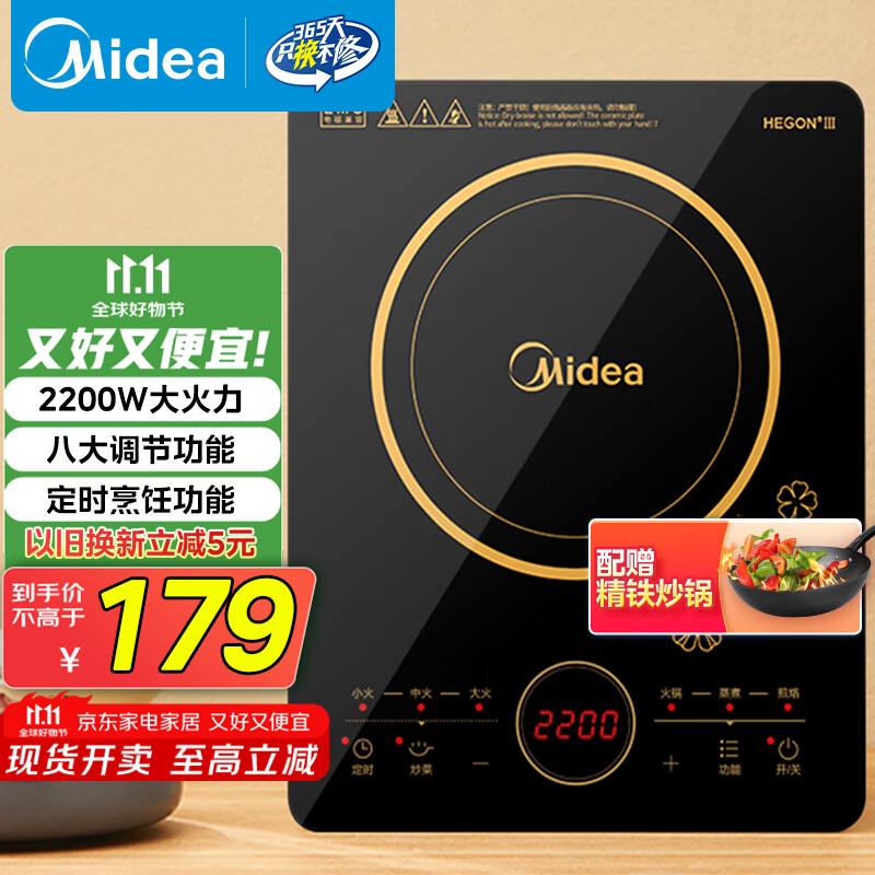 美的(Midea)电磁炉电陶炉 2200W大功率一键爆炒触控电磁炉灶家用 多档调节 智能定时火锅炉国家补贴C22-RT2240
