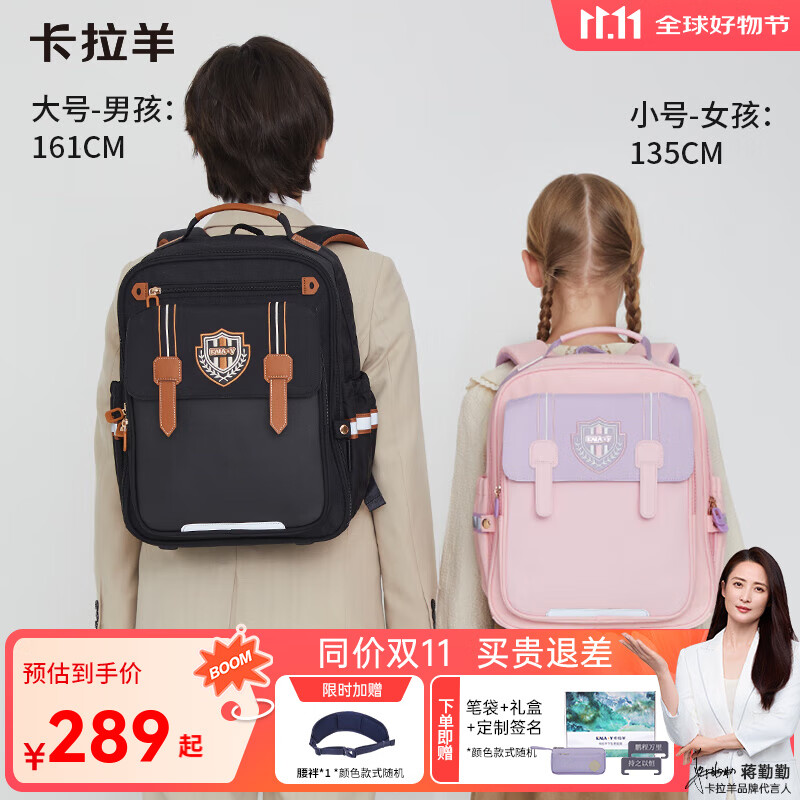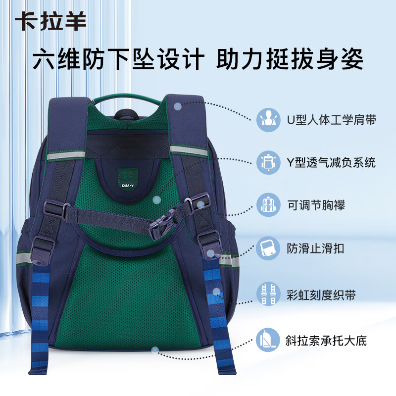 卡拉羊【云朵3.0】书包小学生1-3-6年级防下坠减负云朵书包儿童书包 B款黑金|低调轻奢 20L【3-6年级推荐】
