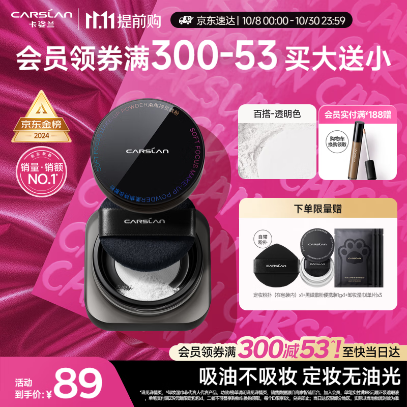 卡姿兰(Carslan)黑磁散粉定妆蜜粉饼控油遮瑕持久防汗不脱妆(透明色)8g生日礼物女