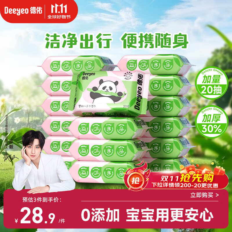 德佑婴儿手口湿巾加厚宝宝湿巾湿纸巾 擦手口屁屁 便携装20抽*16包