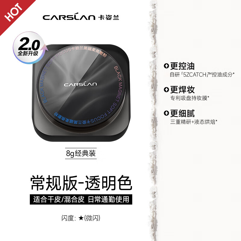 卡姿兰(Carslan)黑磁散粉定妆蜜粉饼(2.0透明色)8g控油遮瑕持久防汗不脱 生日礼物