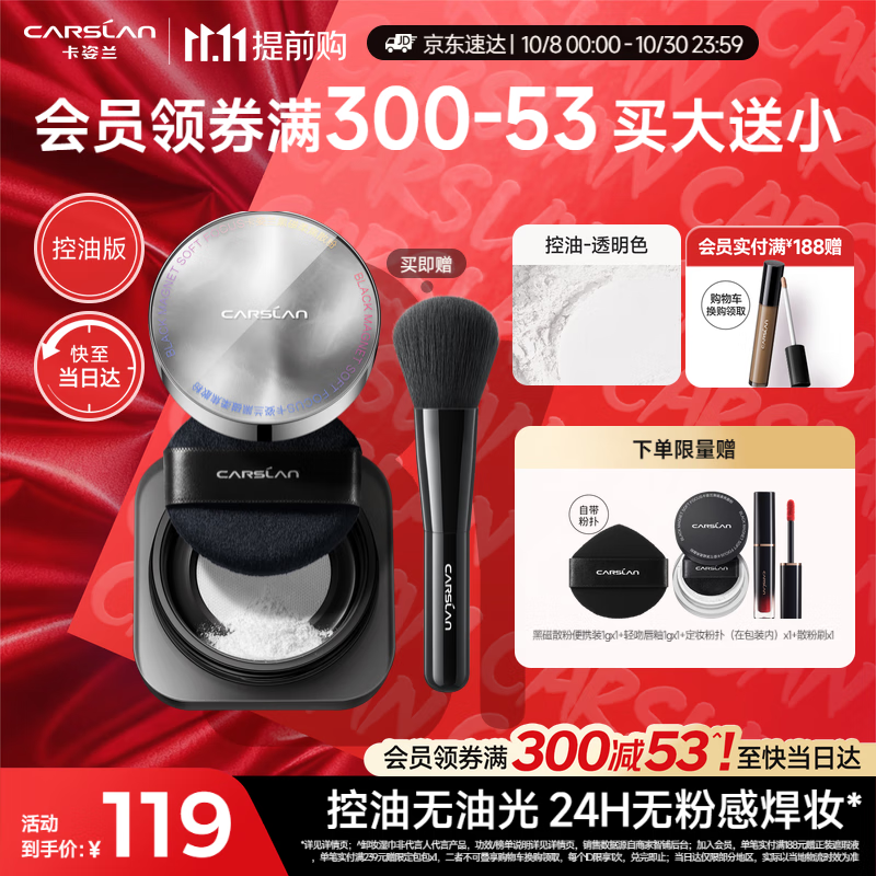 卡姿兰(Carslan)黑磁散粉2.0控油透明8g 定妆蜜粉饼控油遮瑕持久防汗不脱生日礼物