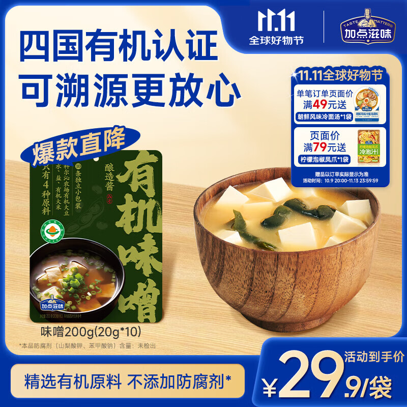 加点滋味有机味噌200g10条小包有机认证0防腐剂味增日式味噌汤可溯源