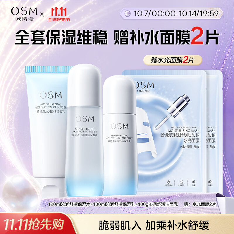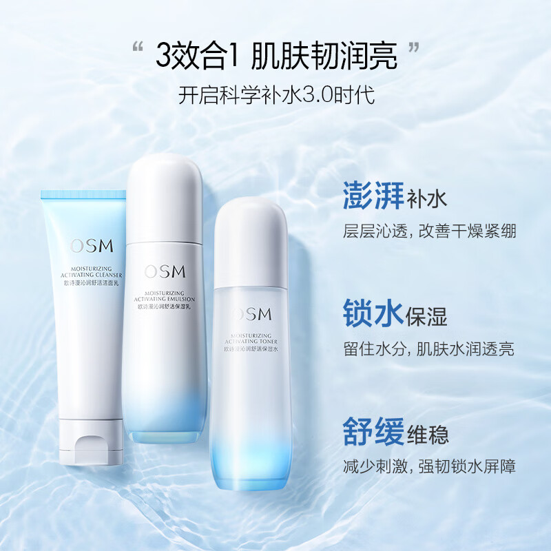 欧诗漫(OSM)沁润舒活套装(洁100g+水120ml+乳100ml)补水保湿护肤品中秋礼物