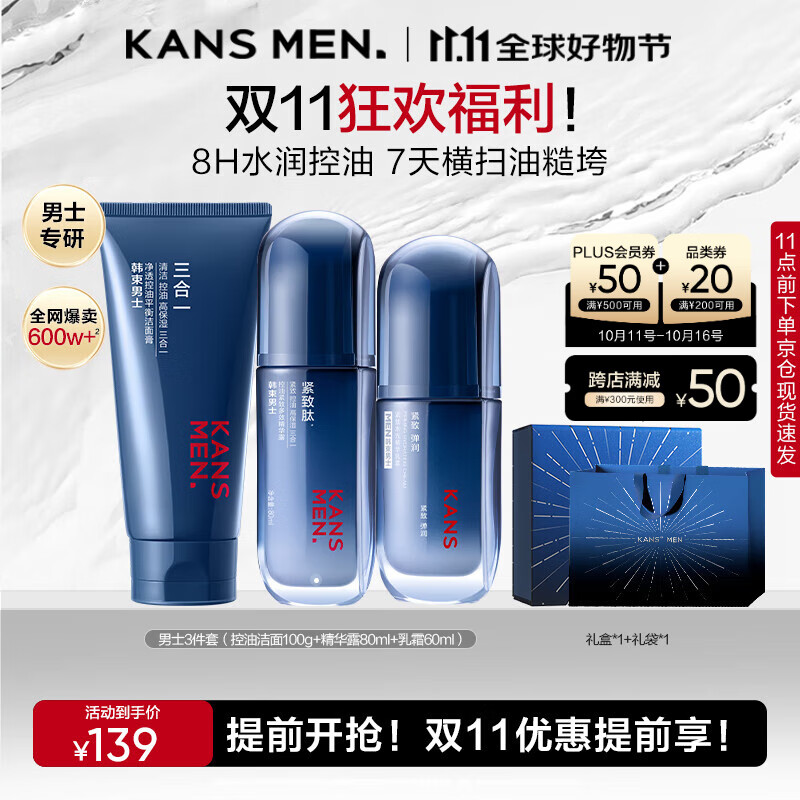 韩束男士护肤品套装控油洁面水乳精华露补水保湿紧致礼物送男友