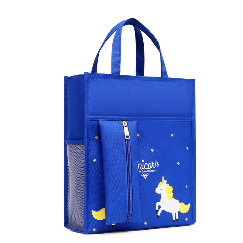 卡通补习袋中小学生手提袋大容量作业袋加大书包学习袋儿童美术袋 手提竖笔袋天蓝小马