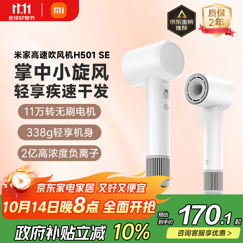 米家高速吹风机H501 SE小米家用吹风筒掌中小旋风 疾速干发大功率负离子护发送女友生日礼物推荐 白色