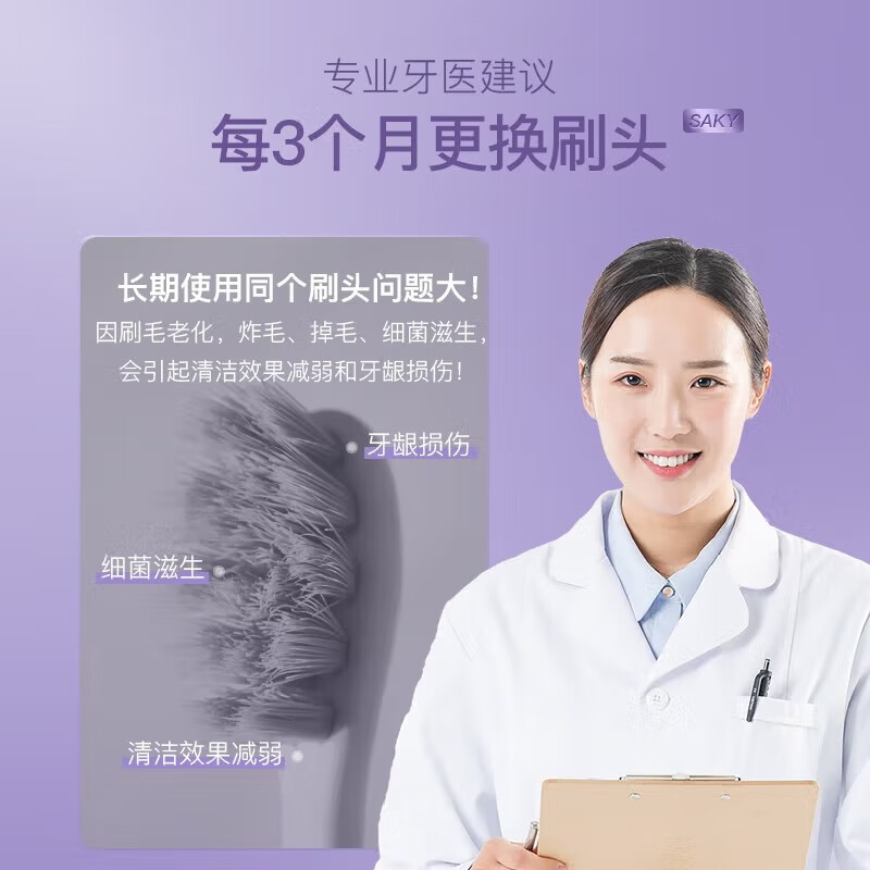 舒客+ 电动牙刷 成人/学生送男友/女友软毛护龈声波5档 T3情侣 配件-刷头2支(颜色随机)