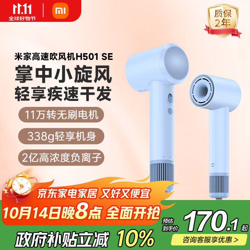 米家高速吹风机H501 SE小米家用吹风筒掌中小旋风 疾速干发大功率负离子护发送女友生日礼物推荐 蓝色