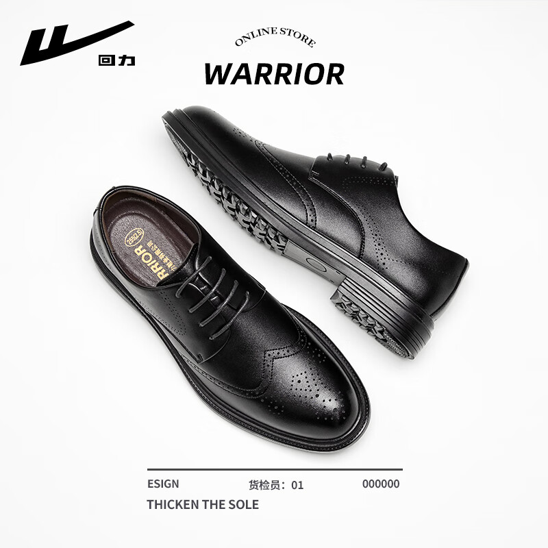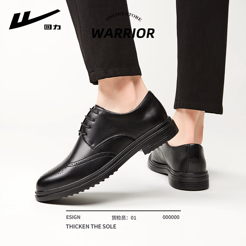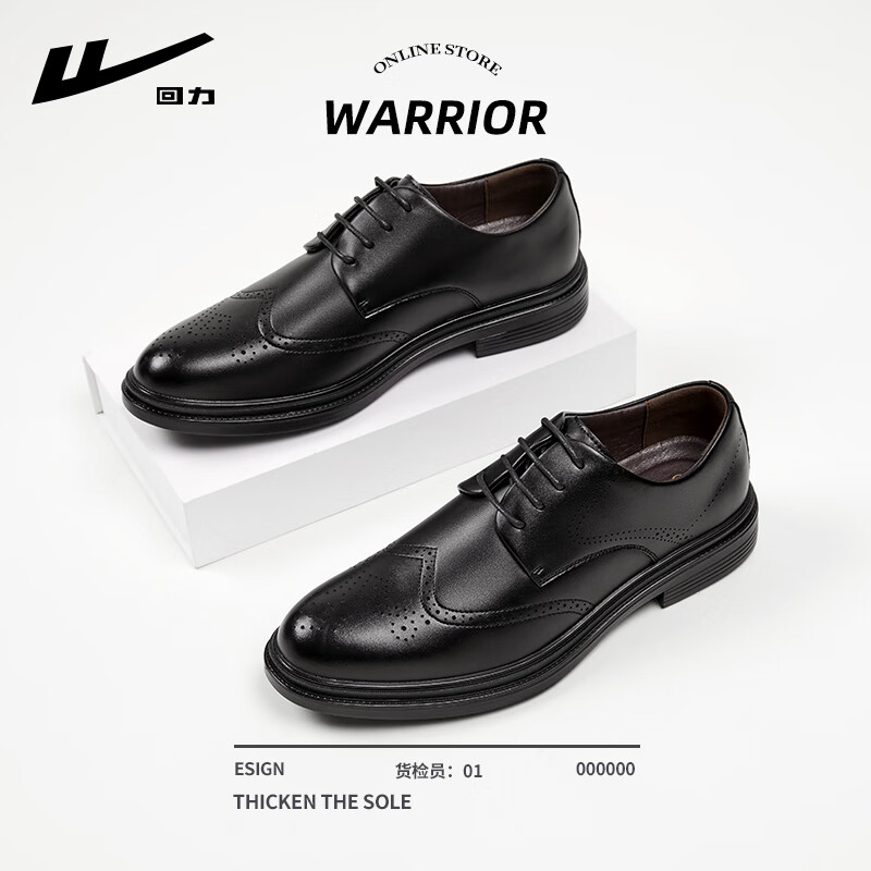 回力皮鞋男秋季英伦风正装商务款男士黑色休闲德比鞋软底结婚新郎鞋子 黑色【布洛克】 40