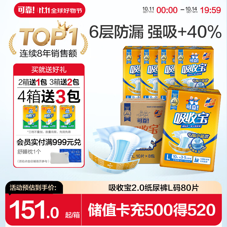 可靠(COCO)吸收宝2.0成人纸尿裤L80片(臀围95-120cm)老年人孕妇尿不湿术后