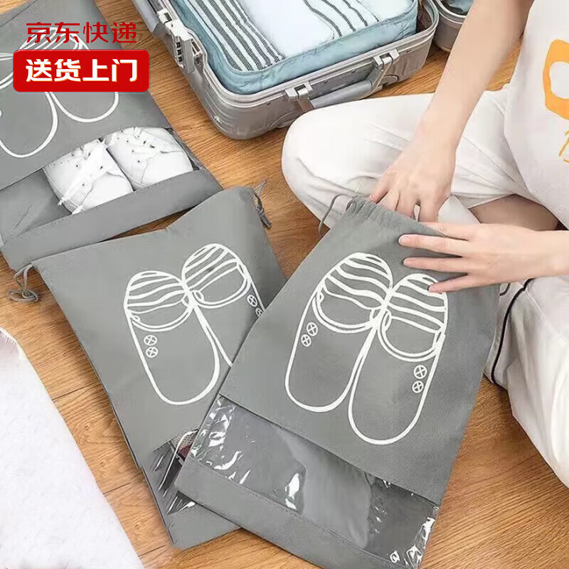 大号旅行鞋袋抽绳束口袋透明可视防泼水防尘鞋套旅行箱隔离袋子 10只