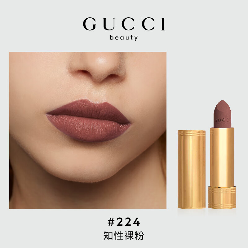 古驰(GUCCI)倾色绒雾唇膏口红224知性裸粉色丝绒哑光质感生日礼物女送女友