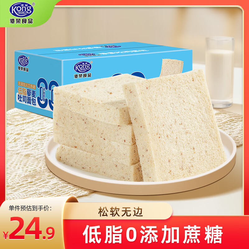 港荣藜麦全麦吐司面包无边460g低脂0蔗糖早餐饼干蛋西式糕点礼物品盒