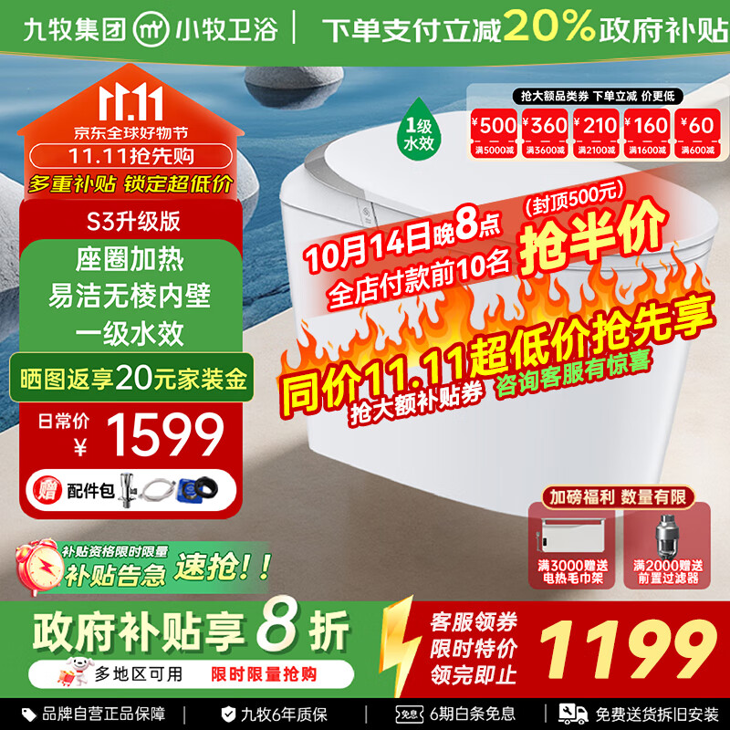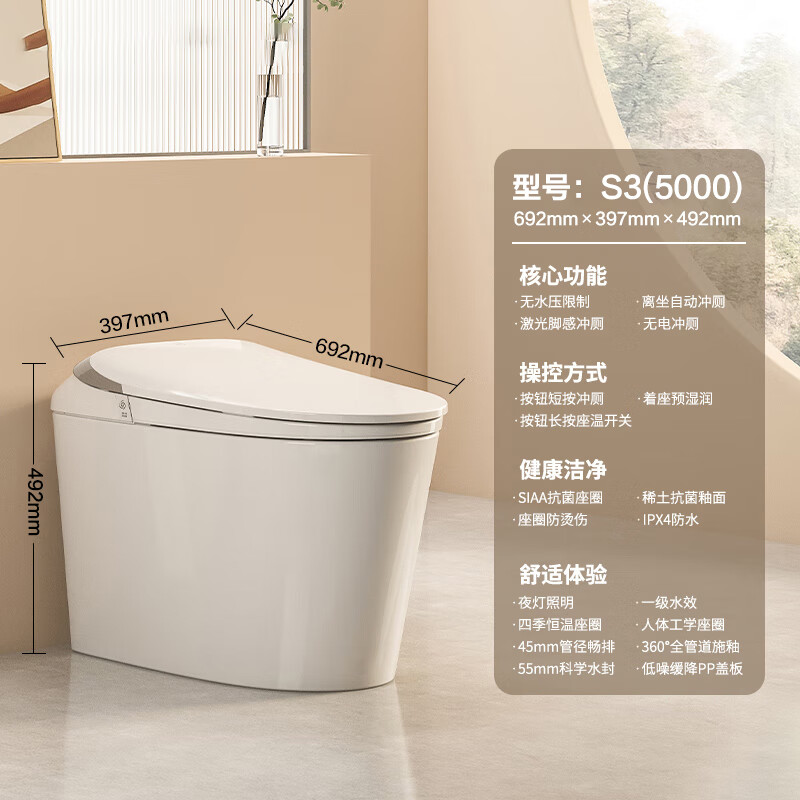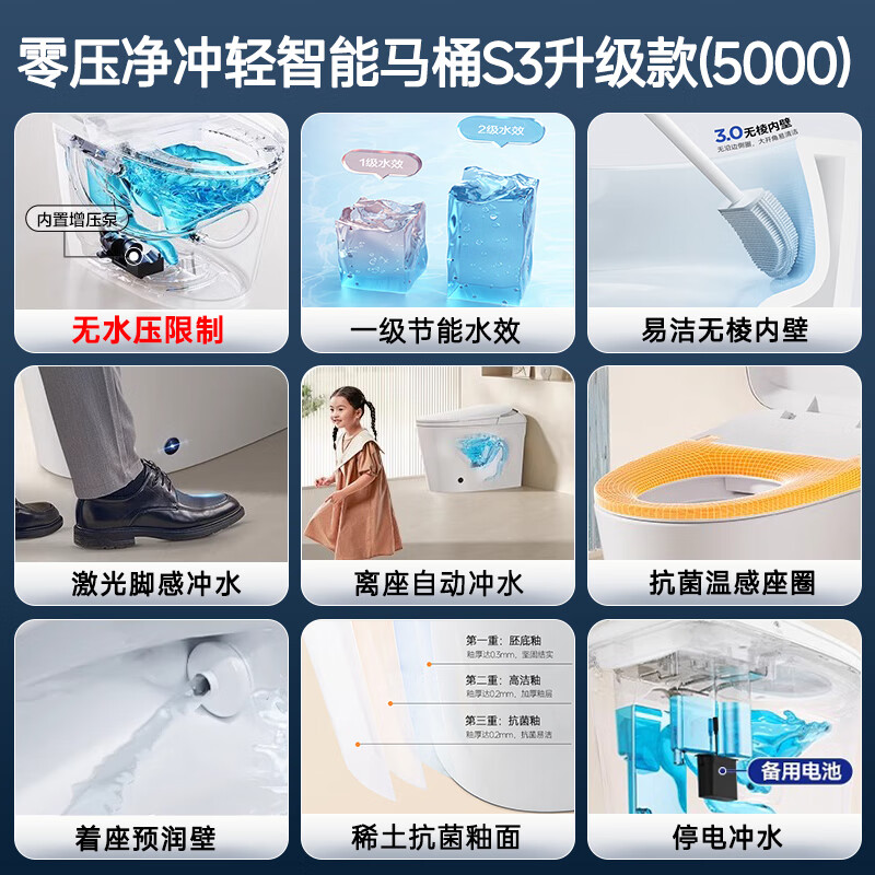 九牧(JOMOO)智能马桶小牧卫浴轻智能除臭抗菌带水箱一体式坐便器 S3升级 无棱内壁+带水箱1级水效 400mm 【390以上选择】