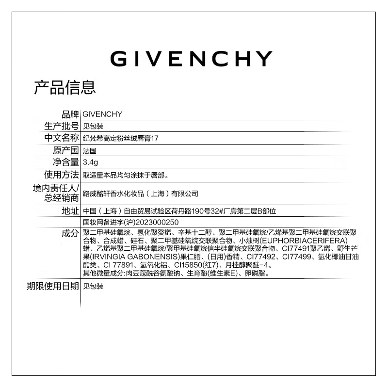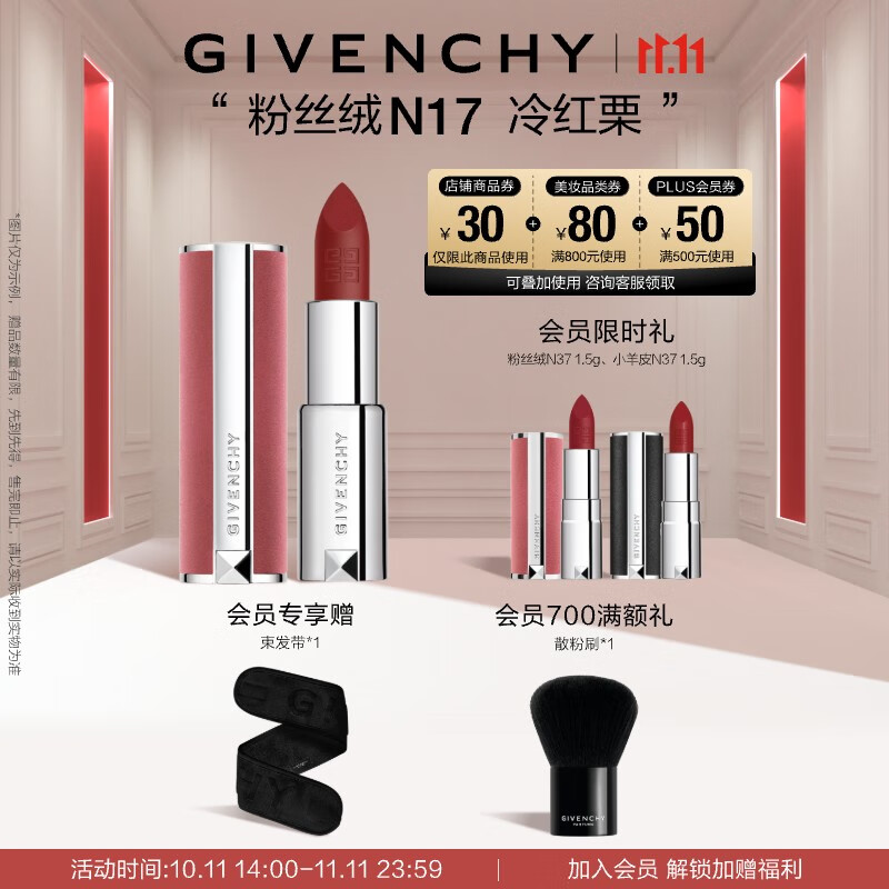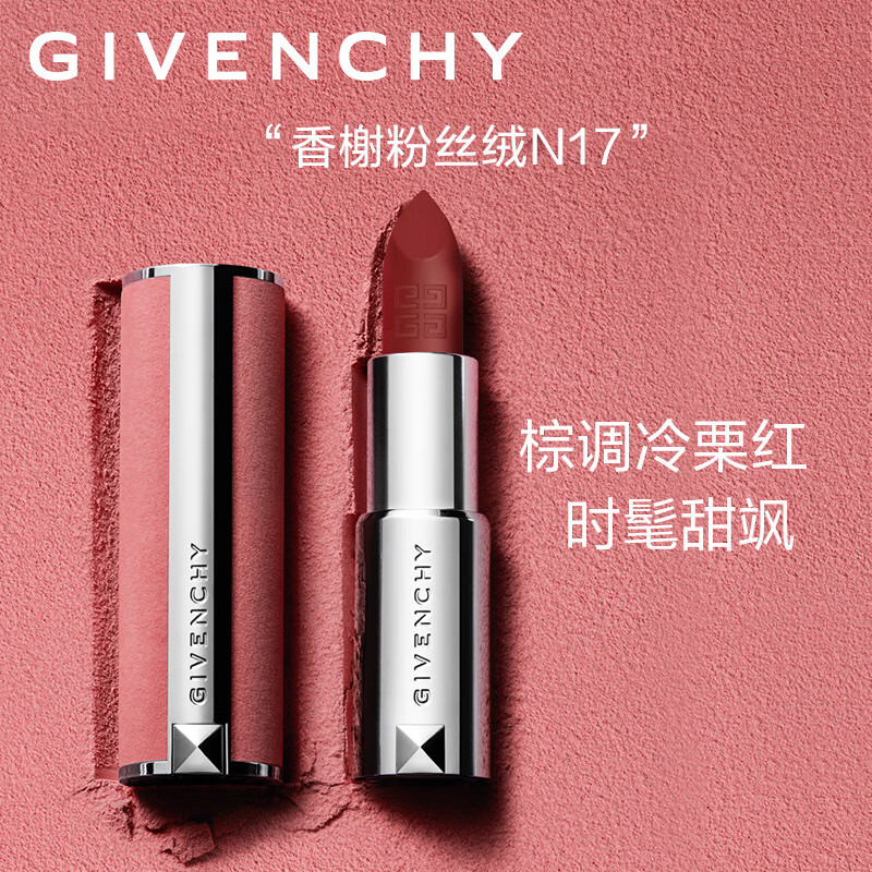 纪梵希(Givenchy)【代言人同款】粉丝绒N17冷红栗色口红唇膏生日礼物 双十一抢先购