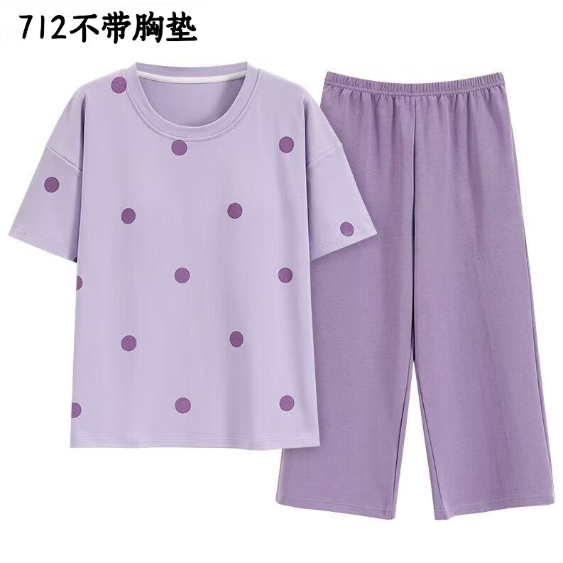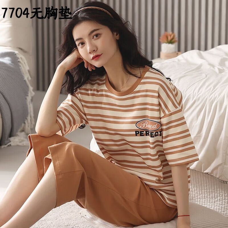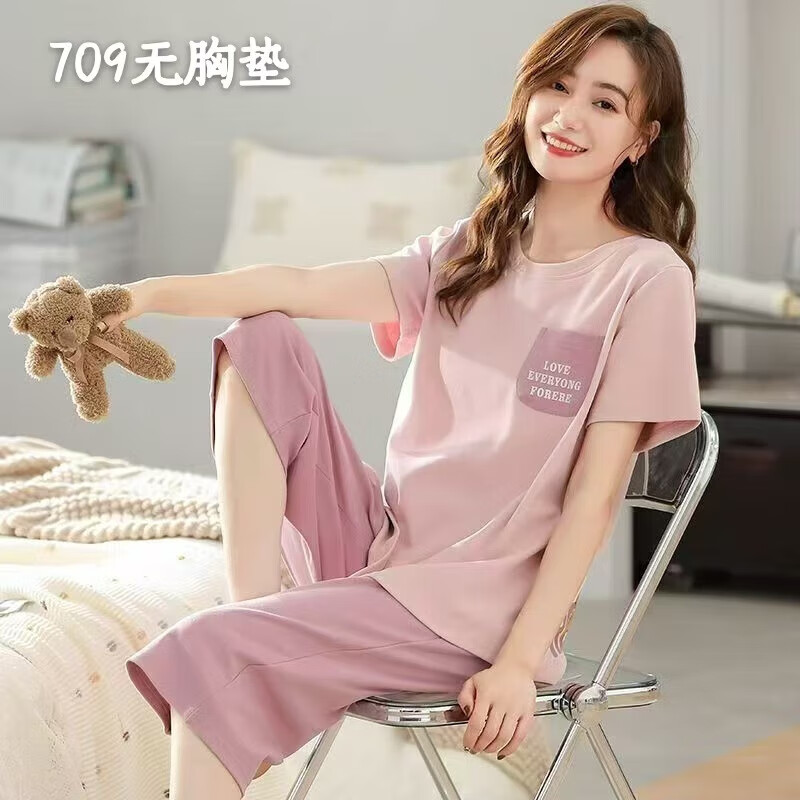 睡衣女款夏天2025年新款夏季棉短袖春秋夏款女士家居服两件套装 富贵712 无带胸垫款 XL XXL 131-145斤