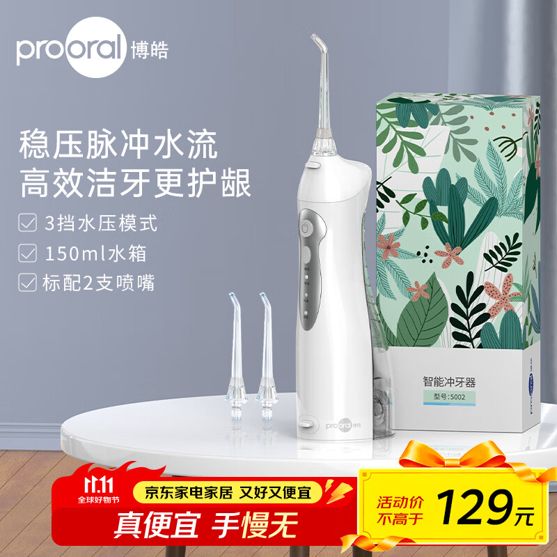 博皓电动冲牙器洗牙器冲洗器牙齿清洁器水牙线牙垢去除工具口腔冲水器清牙器正畸 家用便携式 实用礼物 象牙白
