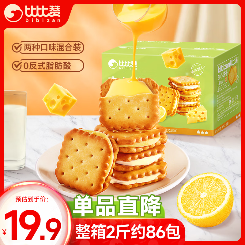比比赞(BIBIZAN)柠檬芝士夹心饼干【混合味】1000g整箱早餐办公室休闲零食品