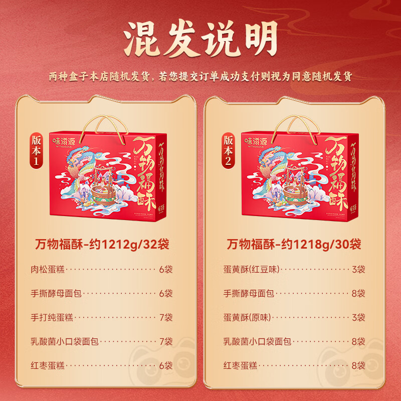 味滋源糕点礼盒1212g 手撕面包吐司肉松蛋中式糕点伴手礼 节日团购送