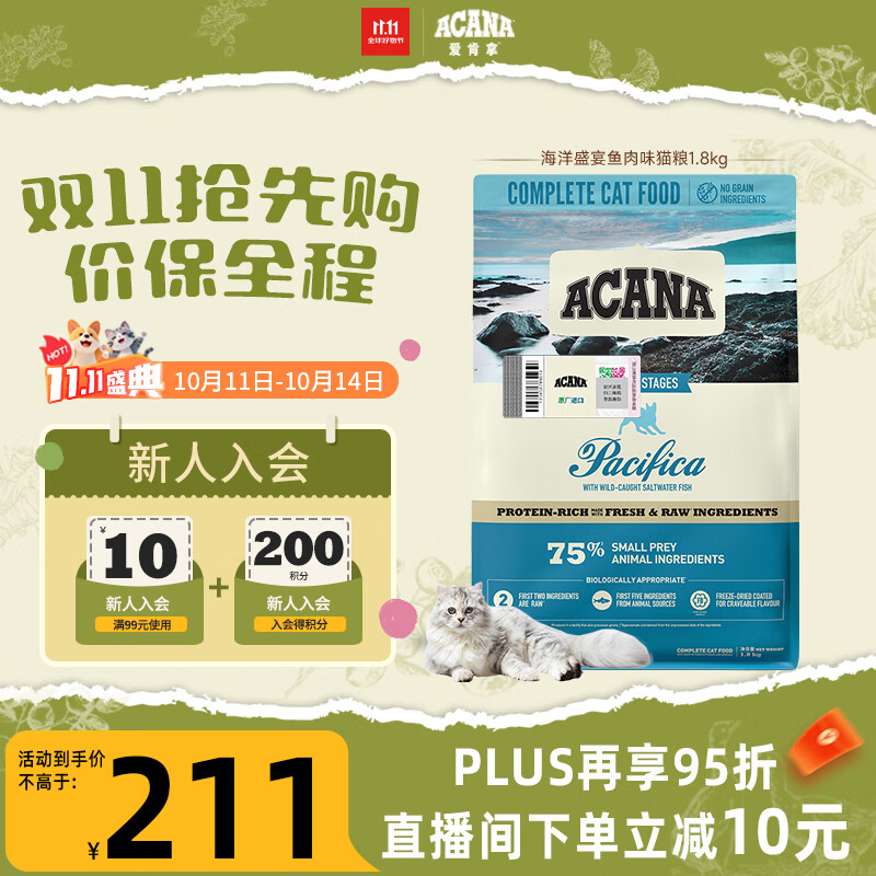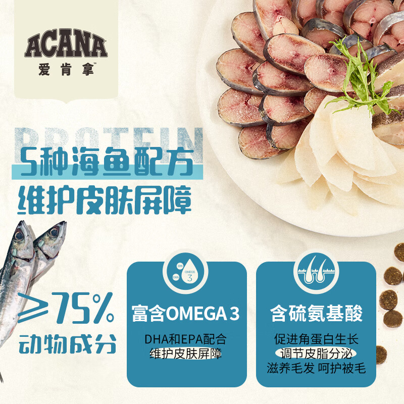 愛肯拿(ACANA)猫粮 海洋盛宴成猫幼猫粮 全价无谷原装进口鱼肉粮1.8kg效期26/7