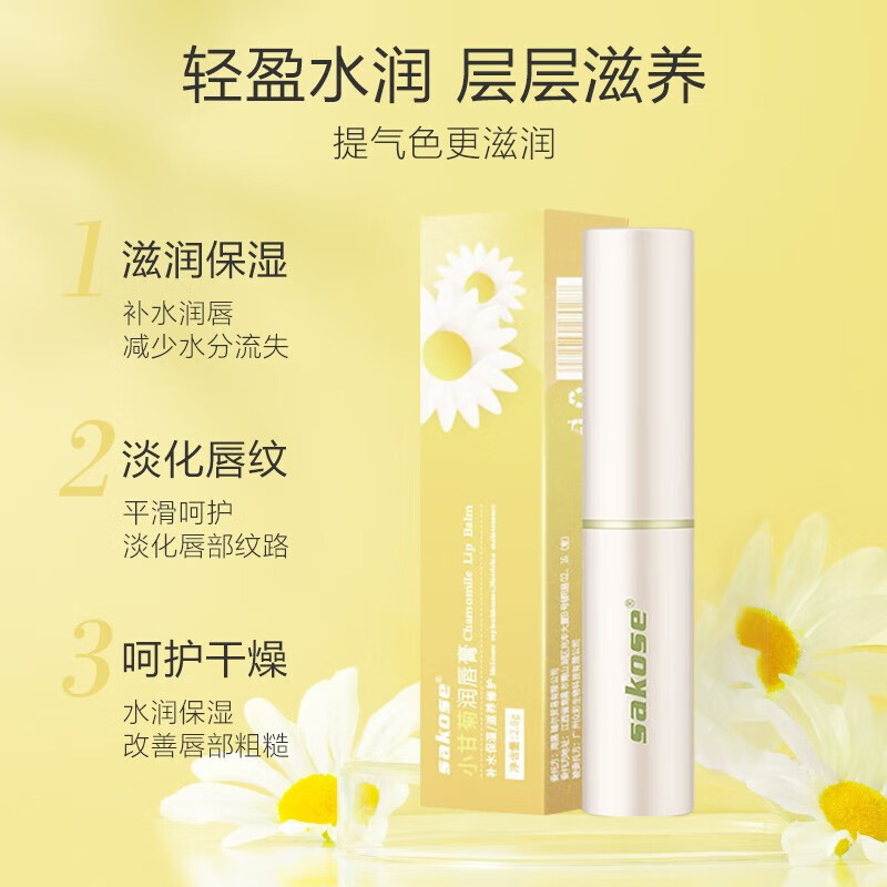 sakose凡士林洋甘菊润唇膏2.8g四季防干裂脱皮唇膜保湿舒缓修护双唇男女