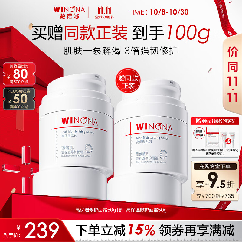 薇诺娜高保湿修护面霜50g干皮补水锁水乳液面霜护肤品