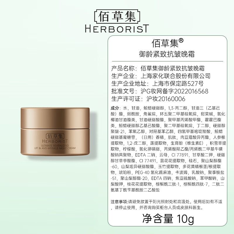 佰草集御龄紧致抗皱晚霜(体验装)10g