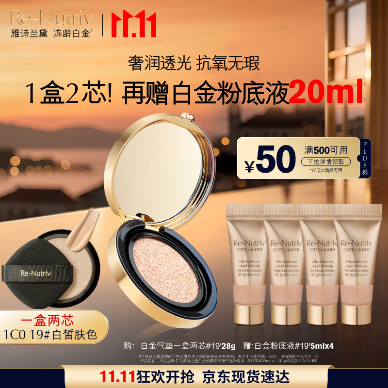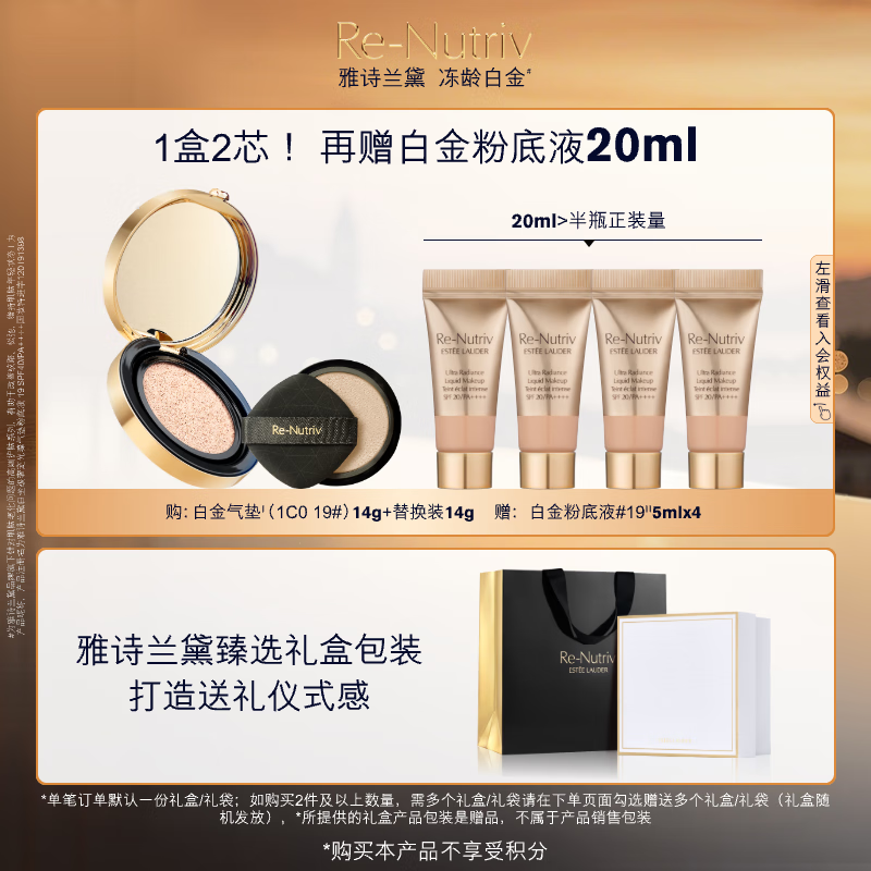 雅诗兰黛白金气垫19#(1C0)28g白皙遮瑕粉底液化妆品礼盒护肤品生日礼物