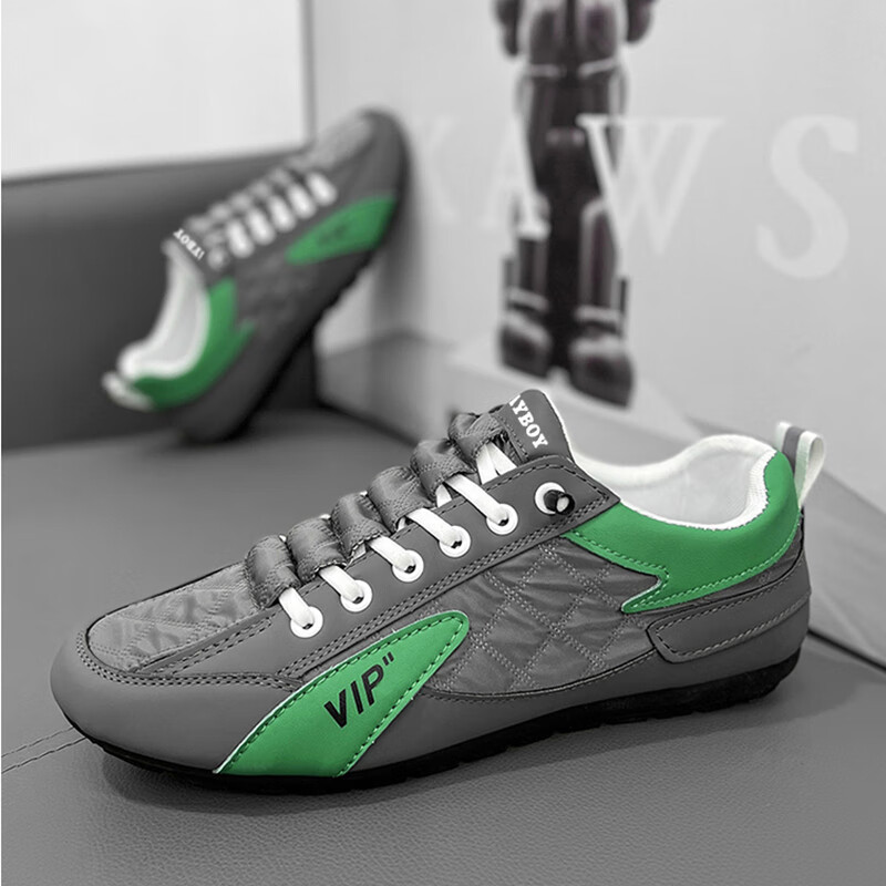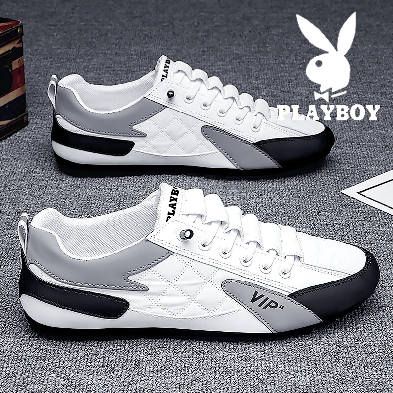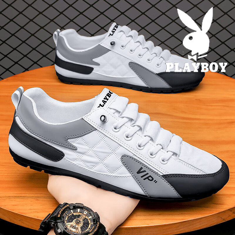 花花公子鞋子男鞋2025春秋季透气新款休闲德训阿甘鞋男士软底皮面板鞋男 白灰 42