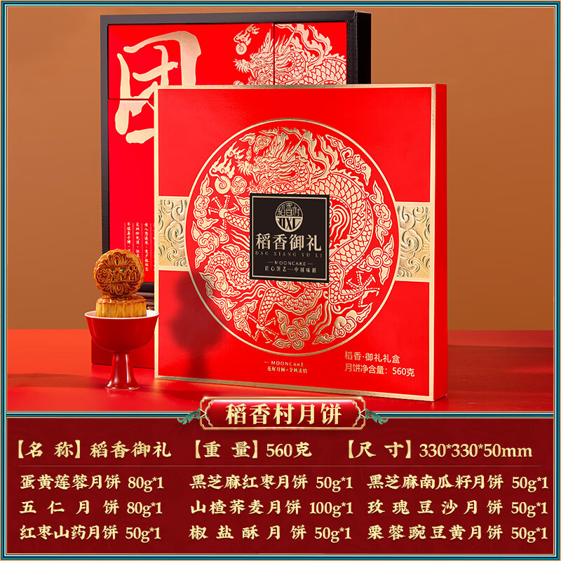 稻香村月饼礼盒 中秋团购福利企业礼品 9饼9味配手提袋 稻香御礼 560g