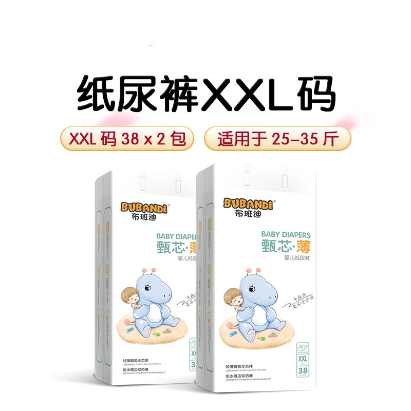 布班迪甄芯薄婴儿纸尿裤XXL76片超薄透气男女宝通用尿不湿