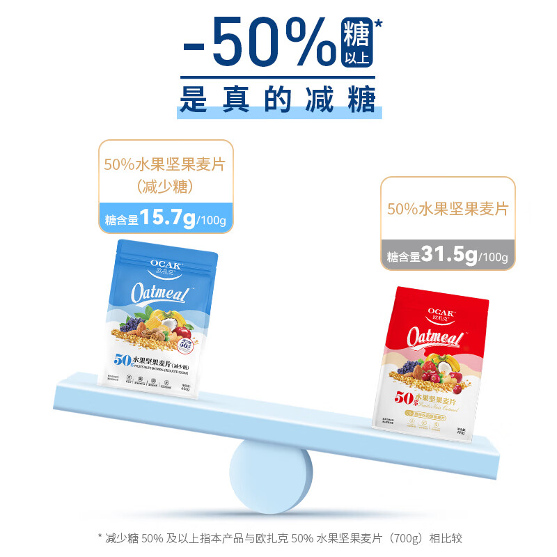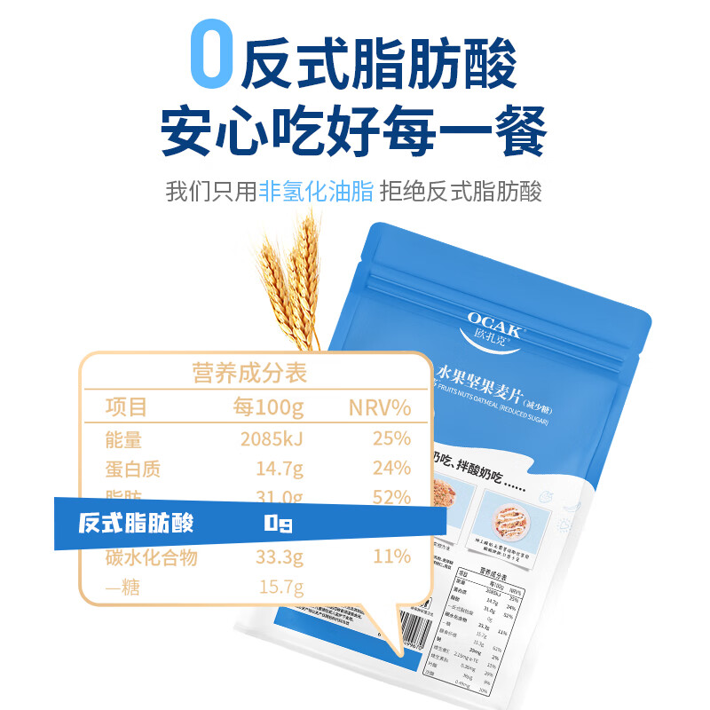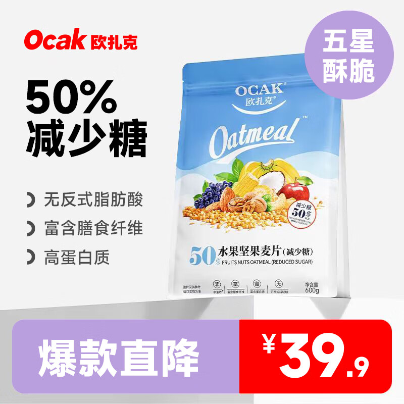 欧扎克 麦片营养早餐 减少糖600g50%水果坚果燕麦片即食非油炸方便代餐