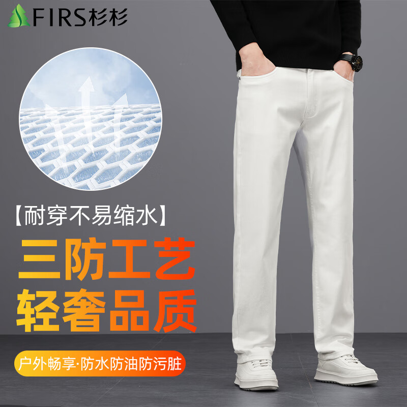 杉杉【三防牛仔裤】秋冬款牛仔裤男长裤纯色耐磨舒适长裤 40 白色