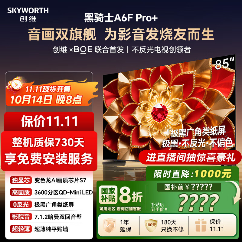 创维电视A6F Pro+ 85英寸智能平板电视机3600分区QD-Mini LED 液晶游戏 85吋国家补贴 A6F Ultra