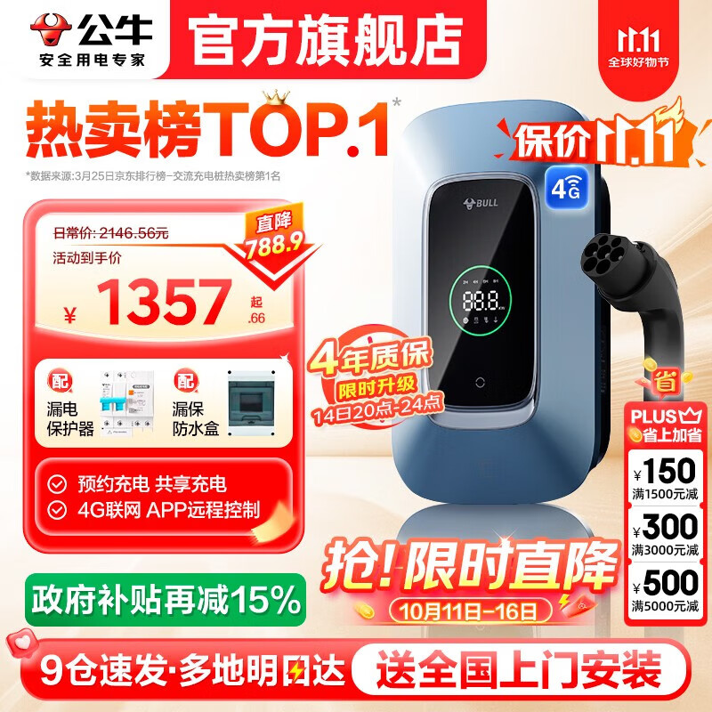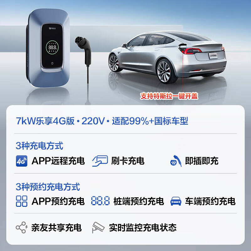 公牛充电桩新能源电动汽车家用7KW适配于特斯拉极氪001理想华为问界m7/m8/m9大众宝马小鹏小米21kw 7KW乐享4G版-带LED大屏(送基础安装)