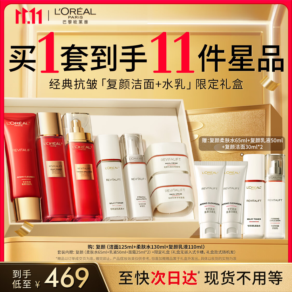 欧莱雅复颜洁面水乳限量礼盒套装抗皱补水护肤品化妆品生日礼物