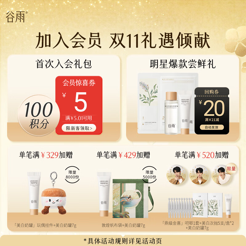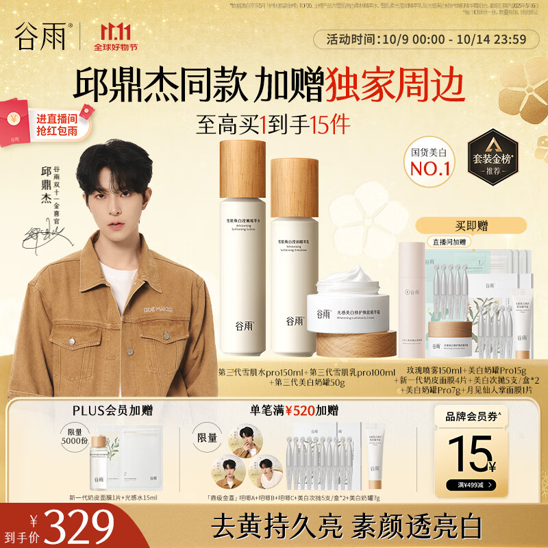 谷雨邱鼎杰同款第三代雪肌水乳霜套装 美白提亮补水保湿化妆品礼物