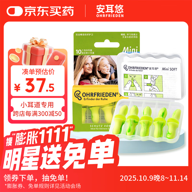 安耳悠 隔音耳塞 德国进口睡眠防噪音 学习工作 女士小号款minisoft 5副