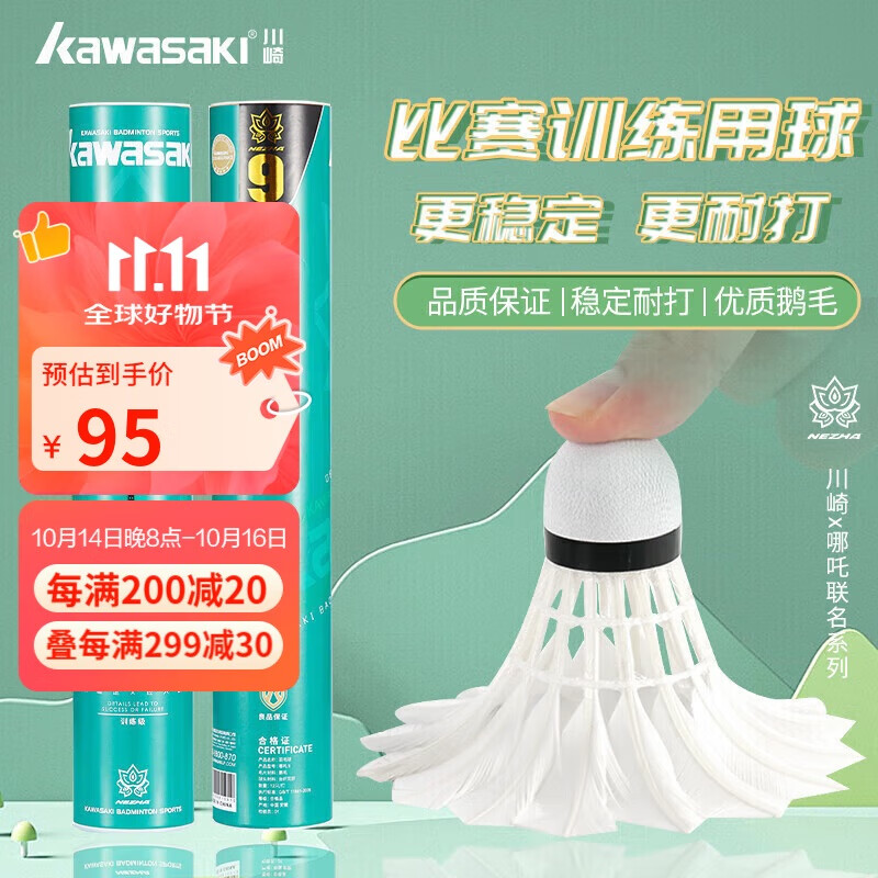 川崎(KAWASAKI)羽毛球比赛训练耐打鹅毛球12个装哪吒9号球