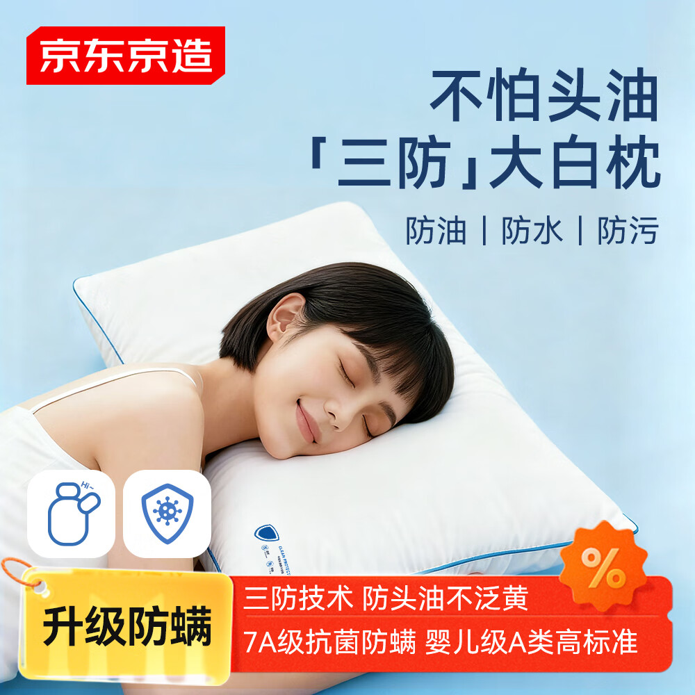 京东京造 不怕头油大白枕 A类抗菌纤维柔软颈椎枕家用成人枕头枕芯 单枕