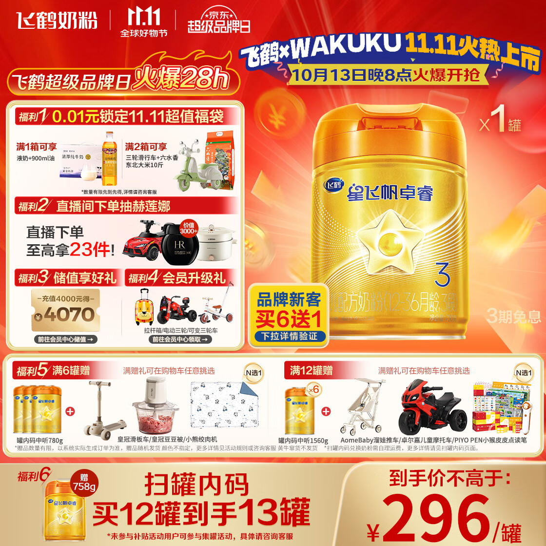 飞鹤星飞帆卓睿Pro A2β酪蛋白3段(1-3岁)幼儿配方奶粉758g 老爸抽检