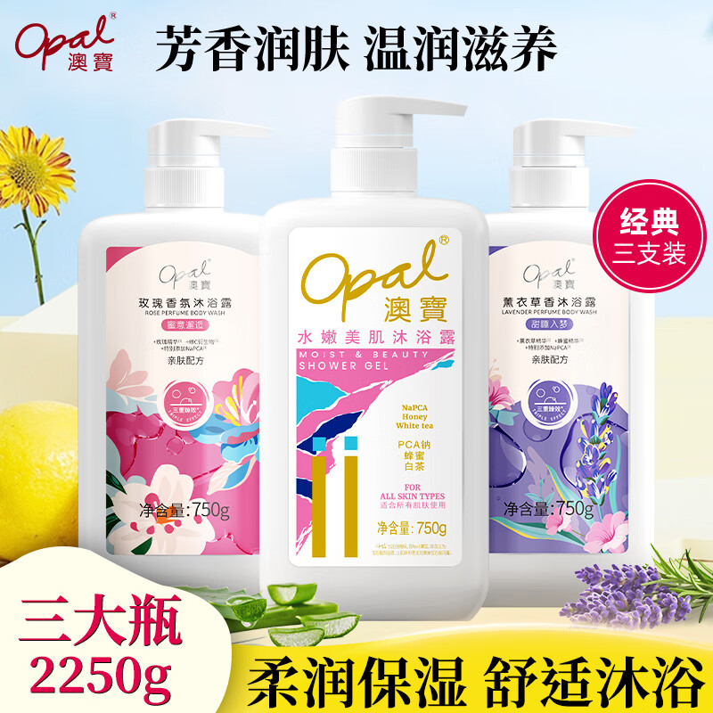 澳宝经典+玫瑰+薰衣草套装2250ml 留香保湿滋润沐浴露 京东超市自营