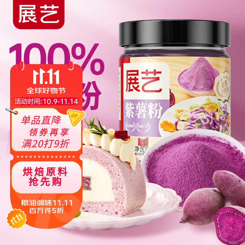 展艺纯紫薯粉彩色饺子雪花酥月饼皮芋泥果蔬粉食用色素原料120g