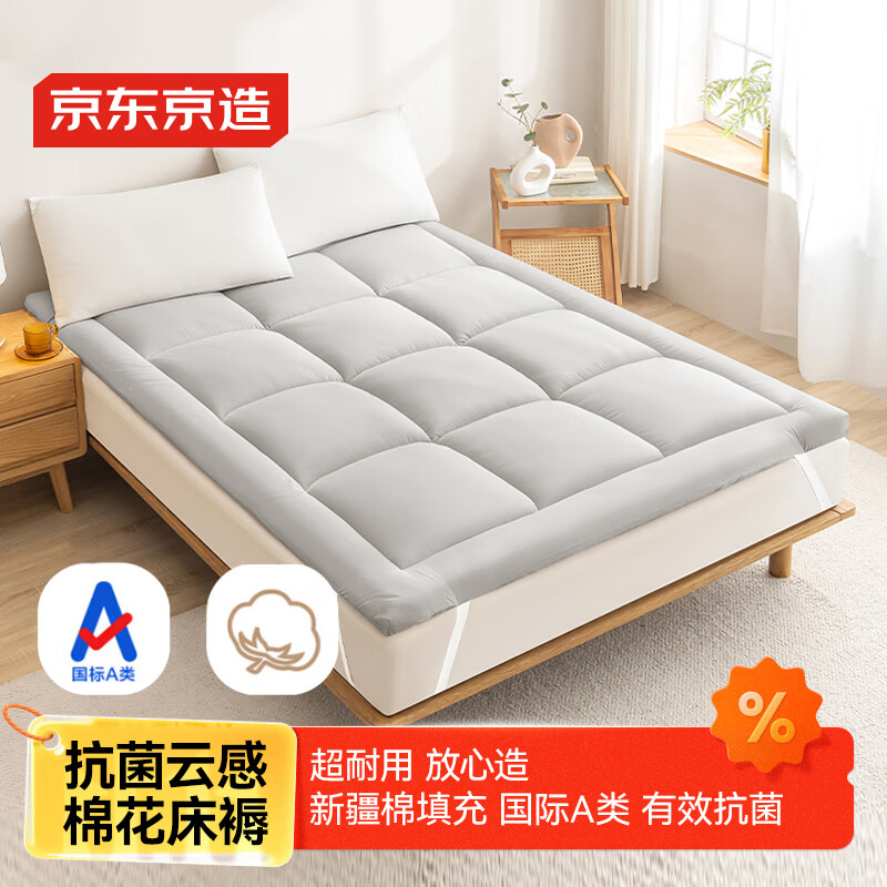 京东京造抗菌云感棉花床垫 新疆棉床褥加厚可折叠学生四季可用软垫 1.5x2m