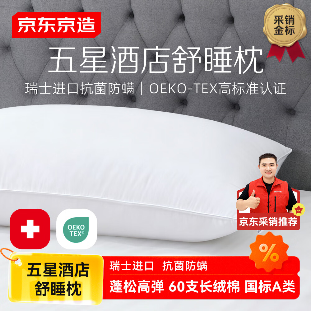 京东京造 A类五星级酒店枕 瑞士抗菌60支全棉贡缎面料枕头 48*74cm单只