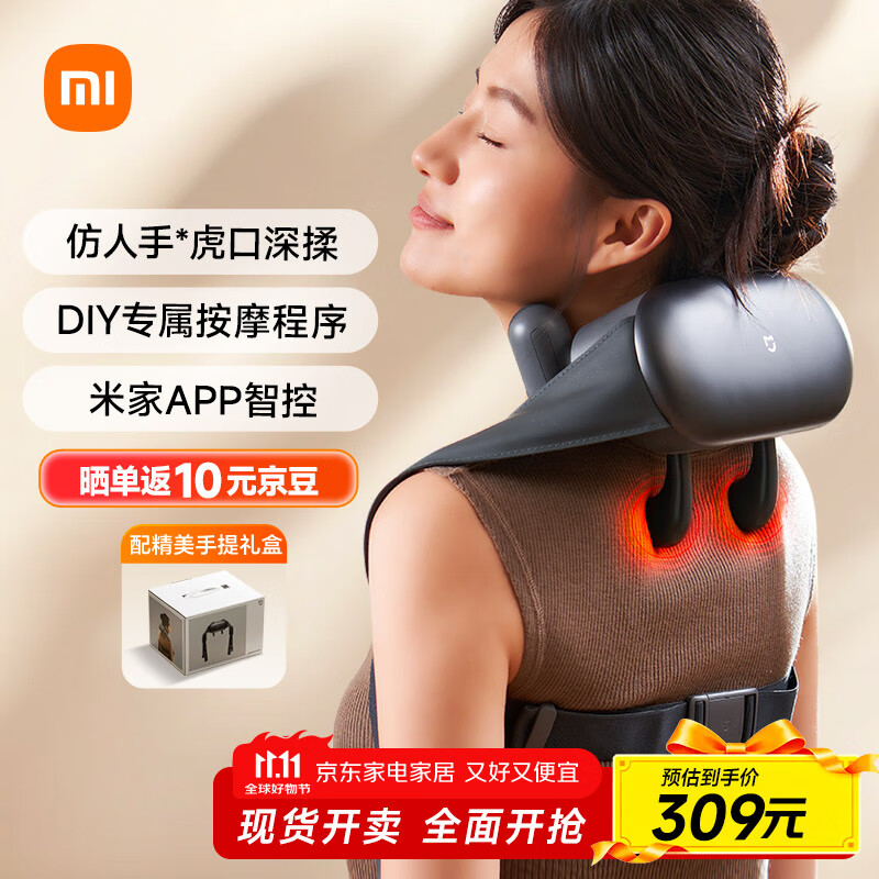米家小米肩颈按摩器斜方肌颈椎按摩器肩颈背部按摩仪颈椎热敷揉捏APP智控 生日节日礼物推荐