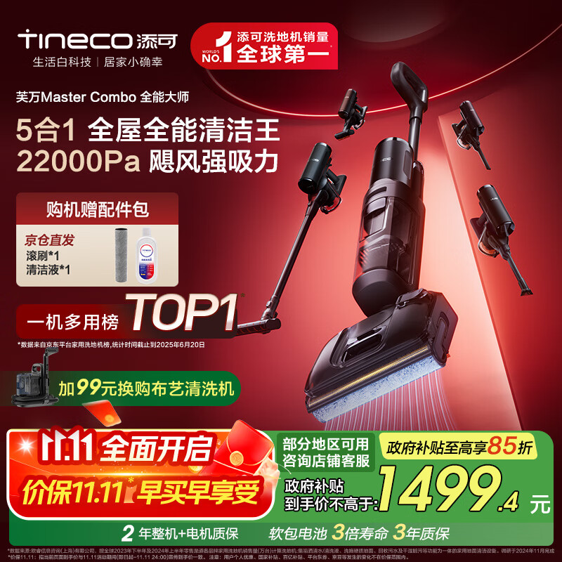 添可芙万MasterCombo一机五用全能大师躺平0缠毛洗地机除螨吸拖一体自动清洗吸尘器